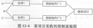 圖形技術首先要建立一個工程項目總流程圖與各分流程圖,要展示項目實施的全部活動。流程圖可用網絡圖來表示,也可利用WBS來表示。圖12—6表示了某一項目從采購到預制構件的簡單流程,它的潛在損失風險如下: