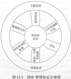 建立一個(gè)組織嚴(yán)密、目標(biāo)和職責(zé)明確、行為高效的HSE管理體系是全面推行HSE管理的首要條件,如圖13—1所示。