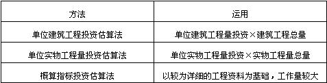 采用概算指標投資估算法,需要占有較為詳細的工程資料、建筑材料價格和工程費用指標,工作量較大。具體方法參照專門機構發布的概算編制辦法。