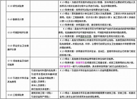 注:工程建設其他費用的具體科目及取費標準應根據各級政府物價部門有關規定并結合項目的具體情況確定。上述各項費用并不是每個項目必定發生的費用,應根據項目具體情況進行估算。