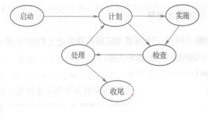 需要指出的是,在過程控制過程中,上述的PDCA循環(huán)規(guī)則,著重說明管理工作是一個(gè)持續(xù)改進(jìn)的過程,它沒有包括項(xiàng)目的啟動(dòng)和收尾兩個(gè)子過程。實(shí)際全過程可以用下圖表示。