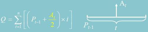 根據代數原理,借款在年內均衡發生則當年新增借款的平均余額為總額的 ,年利息以平均余額為基數計算,年初借款款余額乘以年利率得到存量借款計息,計算公式為:
