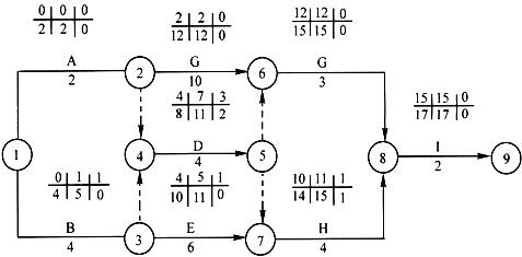 (1)、按節點計算法就是先計算節點最早時間和節點最遲時間,再據此計算出六個時間參數。