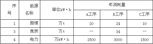 注:①1kg標準煤熱值=7000kcal。②本項目使用的各類能源平均低位發熱量:1kg原煤熱值=5000kcal;1kg焦炭熱值=6800kcal;1kW?h電=2500kcal(按火力發電煤耗計算)。