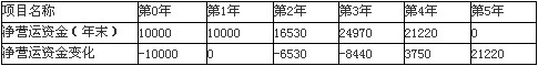 流動資金也叫凈營運資本,是流動資產與流動負債之差。本公司在生產和銷售A產品之前必須購買原材料并對存貨進行投資,并且要保留一部分現金以應付各種不可預見的現金支出,同時公司的各種商業信用可能產生應收賬款和應付賬款。通過分析認為,公司需要投入的營運資金在開始年份逐年增加。然而,在項目周期的趨減年份,凈營運資金逐年減少,最終為零,最后所有的營運資金全部被收回。本項目各年的凈營運資金見表5―16: