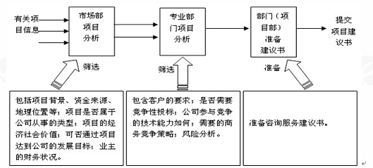 這個過程是為了避免投標的盲目性,減少執行項目的風險;同時通過項目選擇性,體現和貫徹公司的經營戰略。項目的分析和篩選過程一般要經過三個步驟: