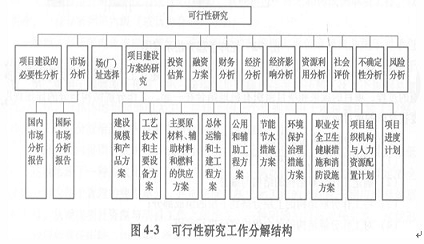 工作分解結構包括了項目所要實施的全部工作,建立工作分解結構就是將項目實施的過程、項目的成果和項目組織有機地結合在一起。工作分解結構劃分的詳細程度要視具體的項目而定。
