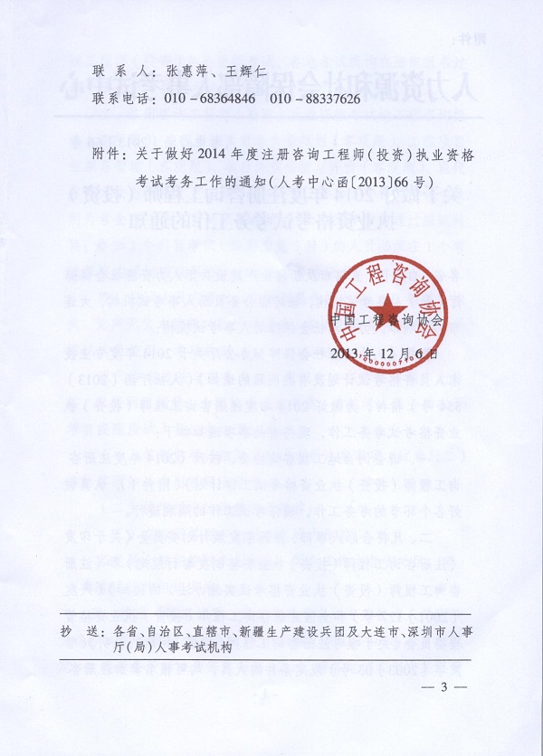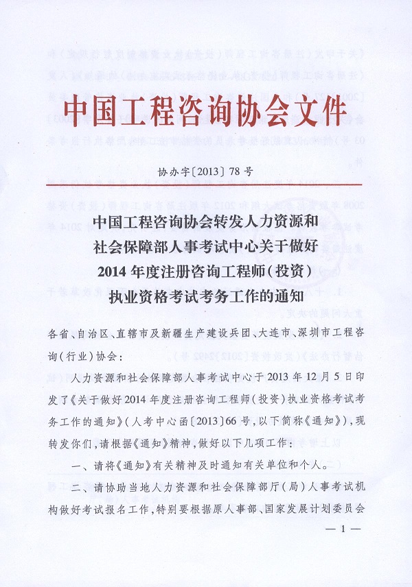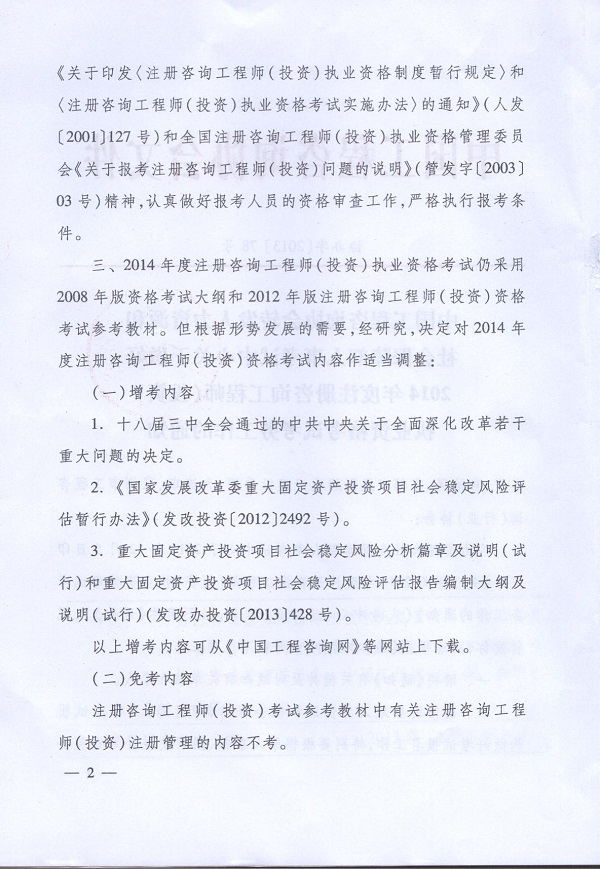 - 2014年咨詢工程師(投資)考試考務工作通知2013-12-09