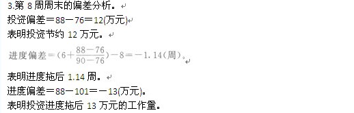 3.分析第8周周末的投資偏差和進度偏差(進度偏差用時間和投資分別來分析)。
