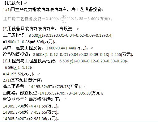 1.已知擬建項目建設期與類似項目建設期的綜合價格調整系數為1.25,試用生產能力指數估算法估算擬建工程的工藝設備投資額;用系數估算法估算該項目主廠房投資和項目建設的工程費與其他費投資。
