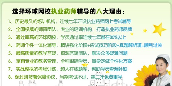 5、2010年4月,執業藥師考試大綱出臺,網校的師資團隊進行了詳細的研讀和分析,開始了授課。同時網校也根據大綱變化和學員反饋進行了班別重新設置,新增了?及嗪驼骖}解析班,套餐增加了金牌特惠班.........