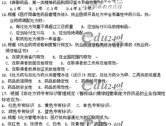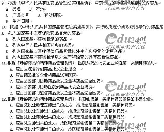 2008年藥師管理與法規(guī)考試真題全套