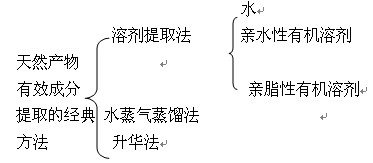 經(jīng)典的提取方法有:溶劑法、水蒸氣蒸餾法、升華法。現(xiàn)在有一些新的提取方法,如:微波提取法,超聲提取法,仿生和半仿生提取法 超臨界流體萃取法。