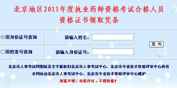 北京市2011年執業藥師考試合格證書領取憑條