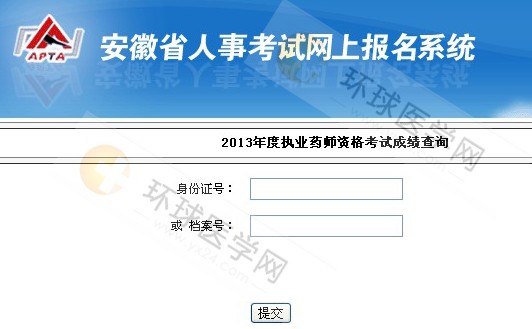 2013年度安徽執(zhí)業(yè)藥師資格考試成績查詢開始,環(huán)球網(wǎng)校醫(yī)學(xué)考試網(wǎng)第一時間發(fā)布執(zhí)業(yè)藥師考試成績查詢信息。