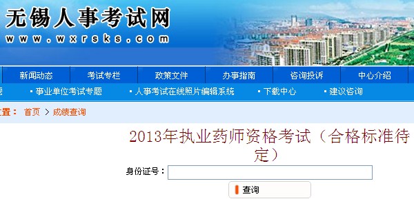 2013年度無錫執(zhí)業(yè)藥師資格考試成績現(xiàn)已公布,請考生登錄無錫人事考試網(wǎng)“成績查詢”欄目,選擇相應考試名稱并輸入身份證號進行查詢。