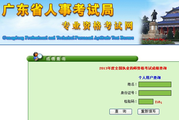 2013廣東執業藥師考試成績查詢入口:點擊進入